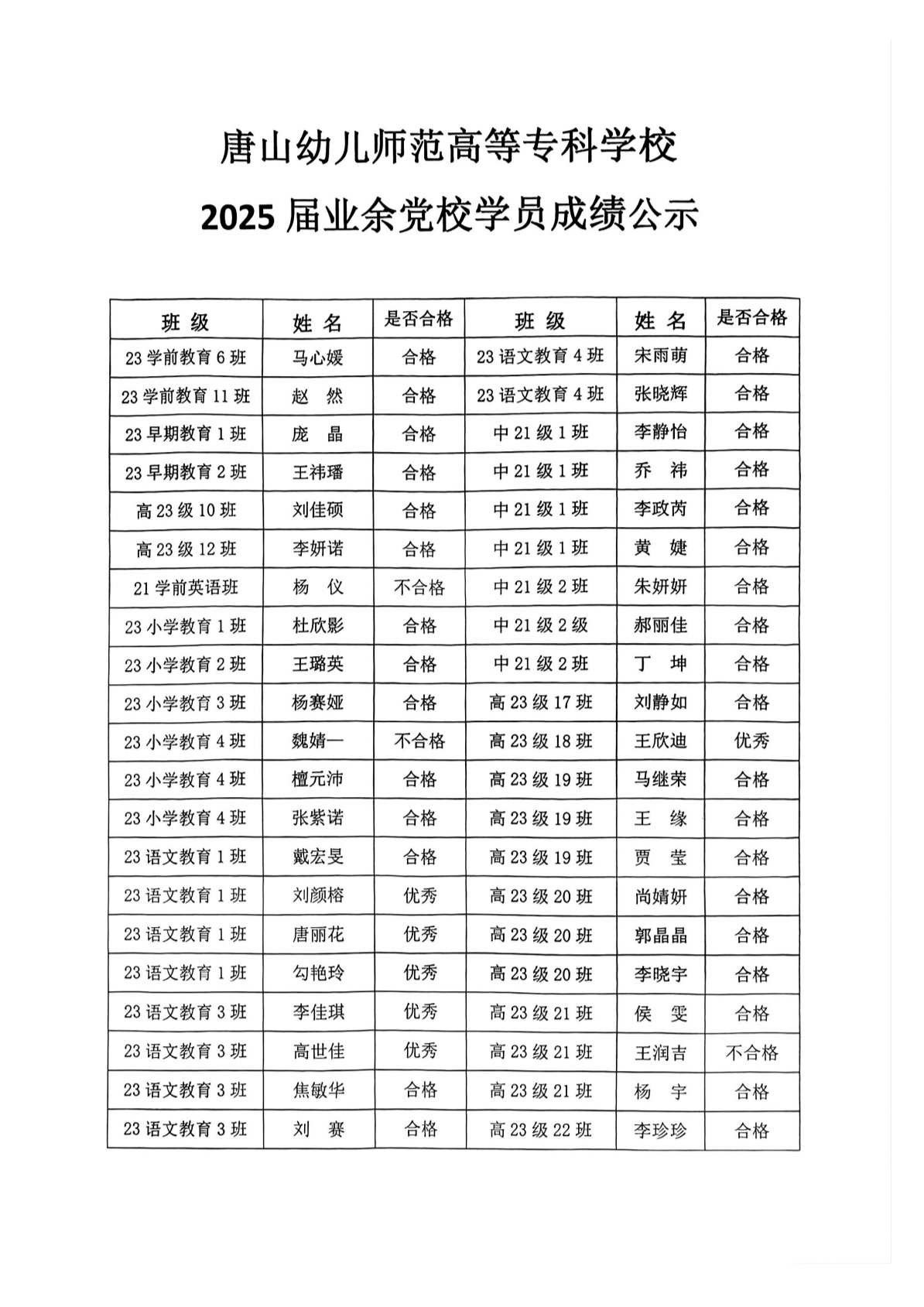 【公示】2025届业余党校学员成绩公示